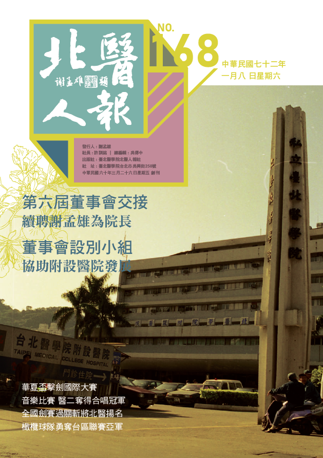 北醫人報第 168 期2025年10月14日/在: 典藏線上刊物 Book Book 下載刊物 PDF 檔 https://opa.tmu.edu.tw/wp-content/uploads/2025/10/tmunp-168.png 891 629 tina790313 https://opa.tmu.edu.tw/wp-content/uploads/2025/09/TMU-logonew_spacing-1__3_-removebg-preview.png tina7903132025-10-14 16:41:012025-10-14 16:41:01北醫人報第 168 期
