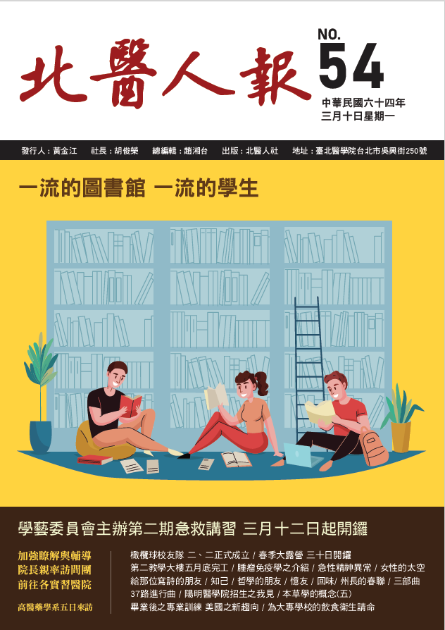 北醫人報第 54 期2025年10月14日/在: 典藏線上刊物 Book Book 下載刊物 PDF 檔 https://opa.tmu.edu.tw/wp-content/uploads/2025/10/tmunp-054.png 894 632 tina790313 https://opa.tmu.edu.tw/wp-content/uploads/2025/09/TMU-logonew_spacing-1__3_-removebg-preview.png tina7903132025-10-14 10:02:082025-10-14 10:02:08北醫人報第 54 期